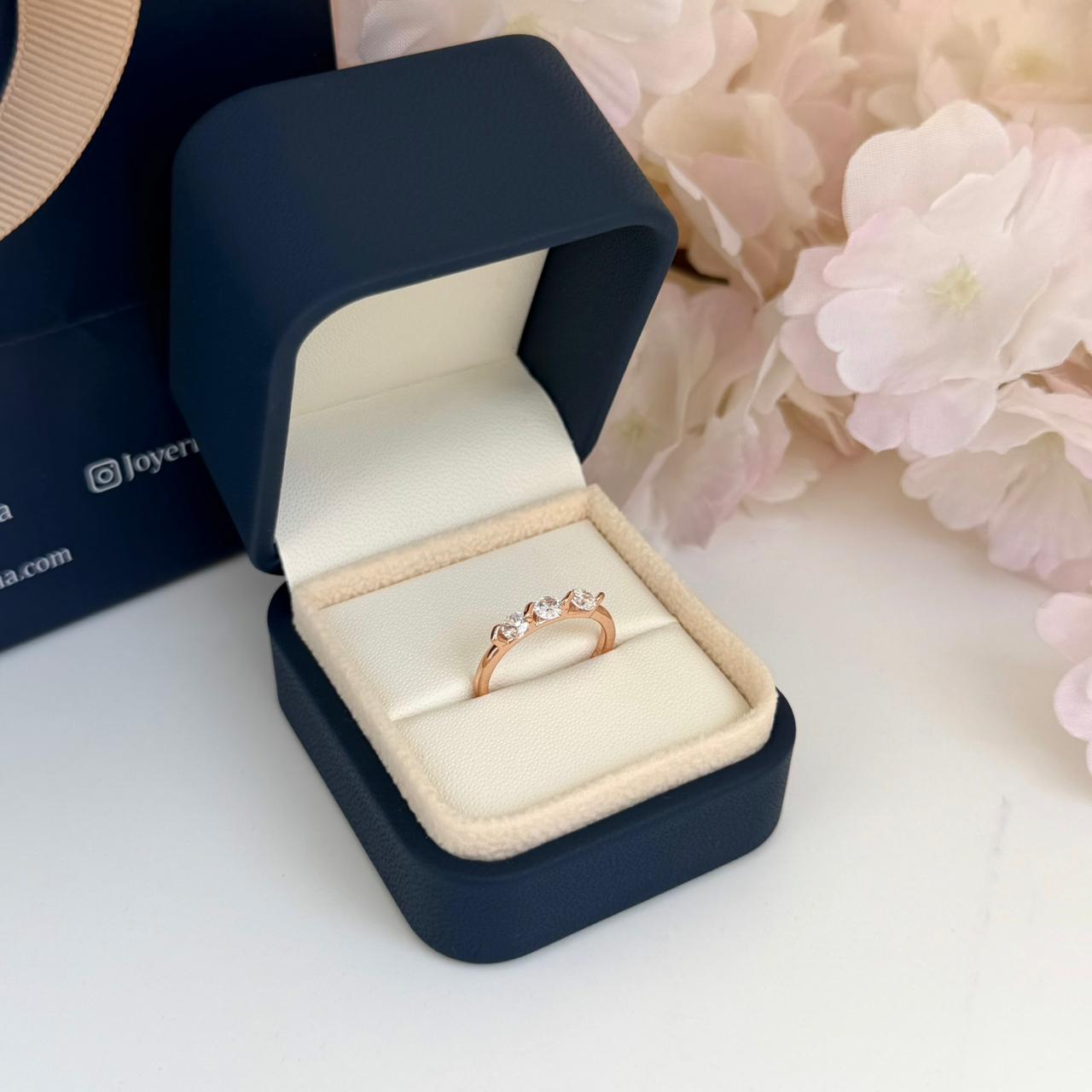 Anillo de Aleación bañado en Oro rosa 18k con 3 Zircones Suizos. Ver guía de tallas